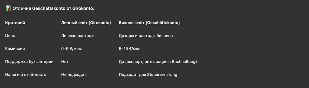 ✅ не используйте личный счёт для бизнеса — откройте отдельный Geschäftskonto;